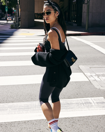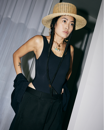 "FOR DAY TO NIGHT, A GREAT SWIMSUIT TOP OR ONE-PIECE IS A TOTAL STAPLE. PAIR IT WITH SNEAKERS OR SANDALS FOR DAYTIME, THEN SWAP IN A HEEL TO TAKE IT INTO THE NIGHT. EFFORTLESS."